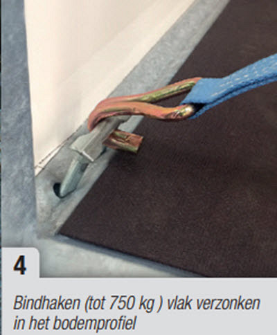 - Volop mogelijkheden voor het vastzetten van uw lading tijdens het transport met de bindhaken in de vloer en de schroefhaken in het kapprofiel.