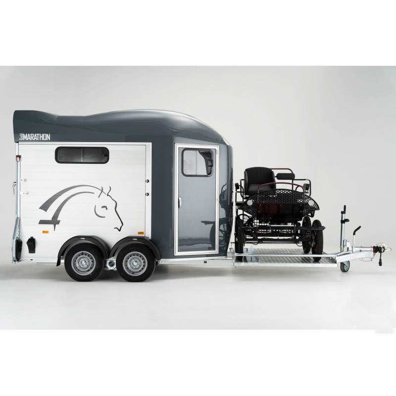 Dankzij het innovatieve Pullman 2 veersysteem en een verlaagd chassis biedt de Marathon een uitzonderlijk stabiele en soepele wegligging. Uw paard reist comfortabel, zelfs tijdens langere ritten. Het ruime aluminium koetsenplatform aan de voorzijde maakt het eenvoudig om uw menwagen te laden en te lossen, inclusief oprijplaten en een slim opbergsysteem voor bomen.