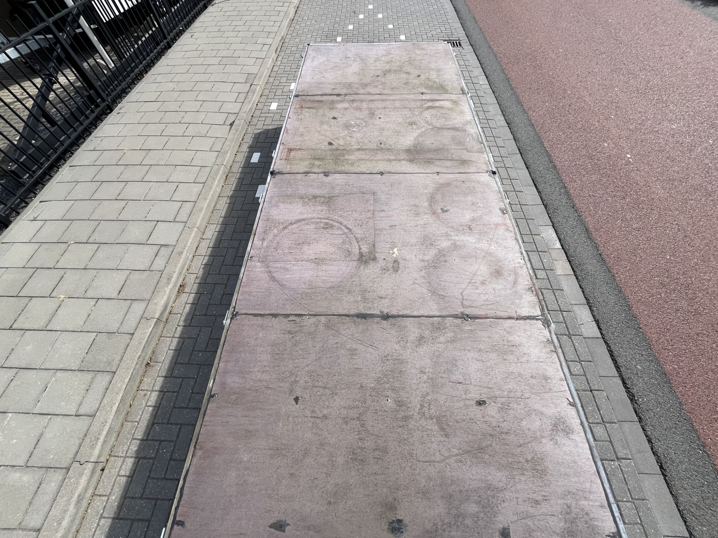 - Betonplex vloerplaat in uitstekende staat, opnieuw gekit