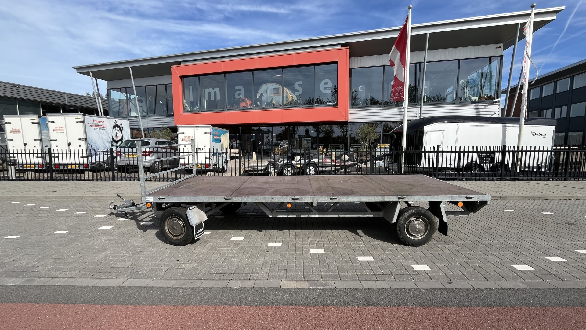 Zeer nette en goed onderhouden Anssems schamel aanhangwagen met een maximaal toelaatbaar gewicht van 2000 kg (2 assen van elk 1000 kg).