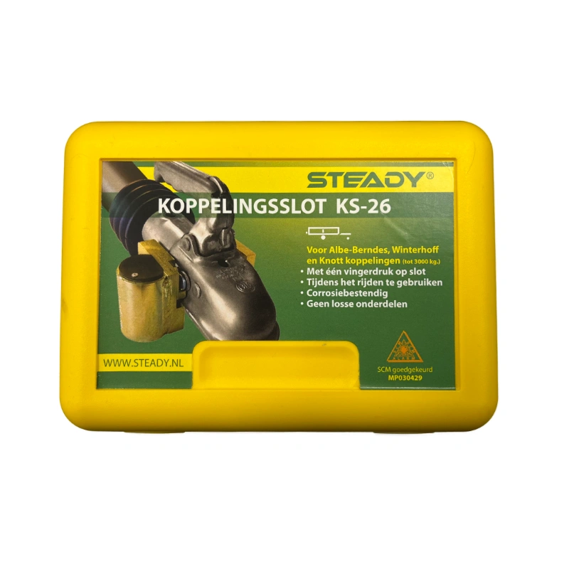 Bescherm uw waardevolle bezit tegen diefstal met het Steady Koppelingsslot KS-26. Dit hoogwaardige disselslot is speciaal ontworpen om uw aanhanger of trailer veilig te stellen, zowel onderweg als op locatie.