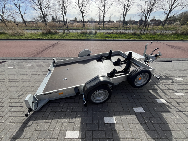 Let op: deze motortrailer is breeder dan een standaard aanhanger